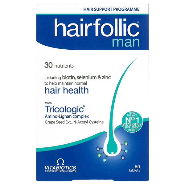 A men’s supplement with 30 essential nutrients and the Tricologic Amino-Lignan complex, including selenium, zinc, and biotin, to nourish hair from the roots and support healthy growth - 60 Tablets