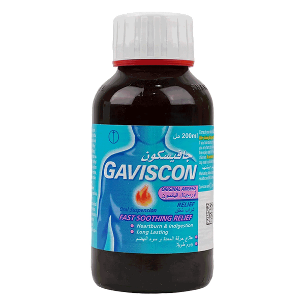 An antacid medication used to relieve heartburn and indigestion. It works by forming a protective layer that floats on top of the stomach contents to prevent acid reflux into the esophagus - 200 ml