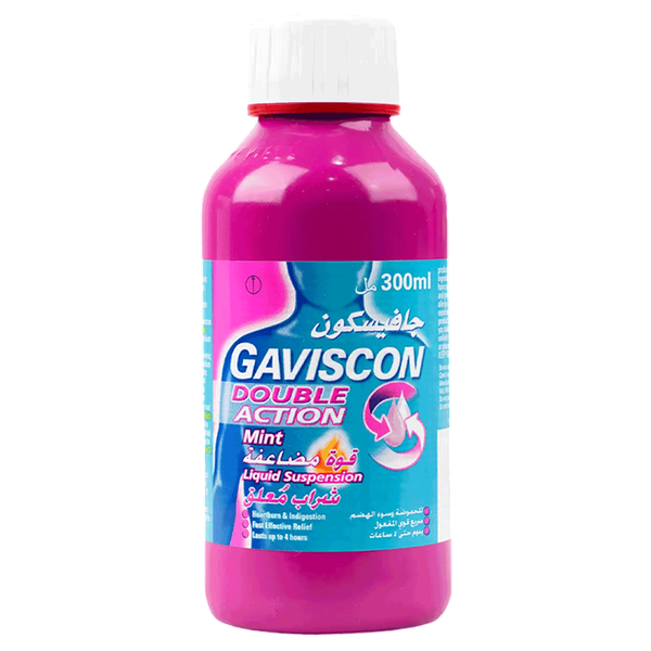 An antacid medication used to relieve heartburn and indigestion. It works by forming a protective layer that floats on top of the stomach contents to prevent acid reflux into the esophagus - 300 ml