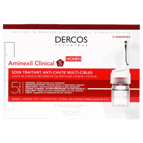 Designed specifically for women experiencing hair thinning or loss due to stress, seasonal changes, or hormonal imbalances. The formula contains Aminexil, a patented molecule known for its ability to strengthen hair roots and prevent collagen hardening around hair follicles, thus improving hair anchorage and reducing hair loss - 21 Ampoules