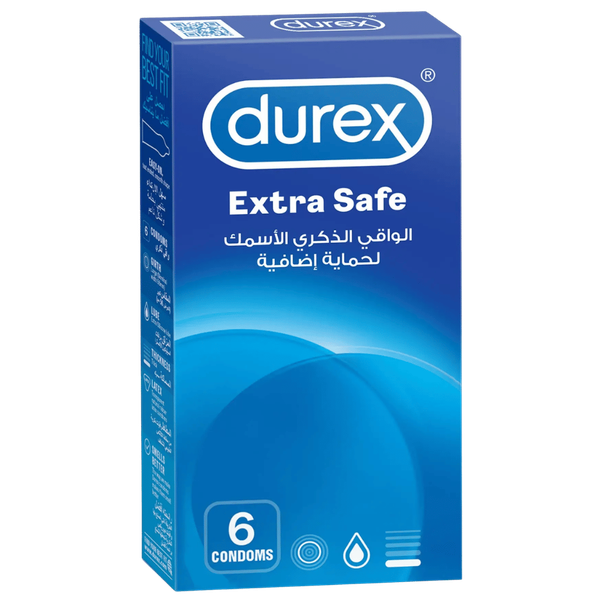 Durex Extra Safe condoms are made from latex a natural transparent rubber designed for a high level of security and protection, with a nominal width of 56 mm - 6 Pcs
