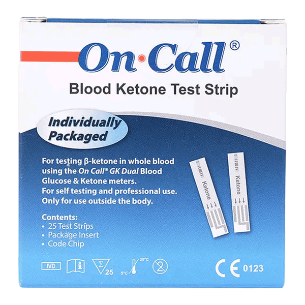 Test strips used to accurately measure blood ketone levels. They are easy to use and help in effectively managing patient health - 25 Strips
