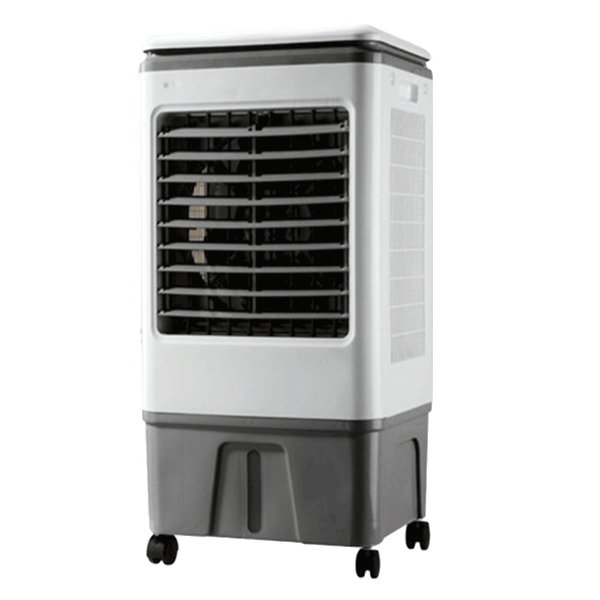 A 115W evaporative air cooler with a large 30L water tank, three-speed airflow control, high-density cooling curtain, wide air coverage, low energy consumption, and smooth caster wheels for flexible indoor and outdoor cooling - 30 L
