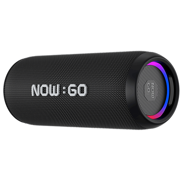 A compact portable Bluetooth speaker equipped with Bluetooth 5.3 connectivity, 20 W powerful output, up to 24 hours of playtime on its 4000 mAh rechargeable battery, IPX6 waterproof/dust-resistant design, and dynamic RGB party lighting