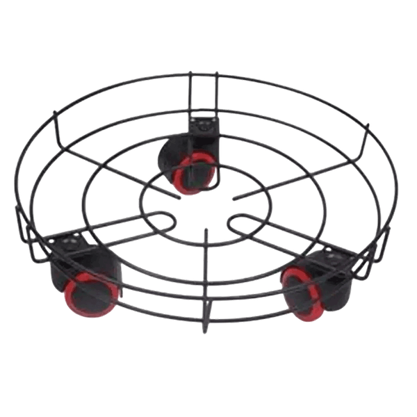 Heavy-duty moving stand made of iron and polypropylene with 5.3 mm wire diameter, spray-coated metal surface, suitable for flower pots or gas cylinder base, equipped with 3 wheels without brakes - 34 x 12.5 cm